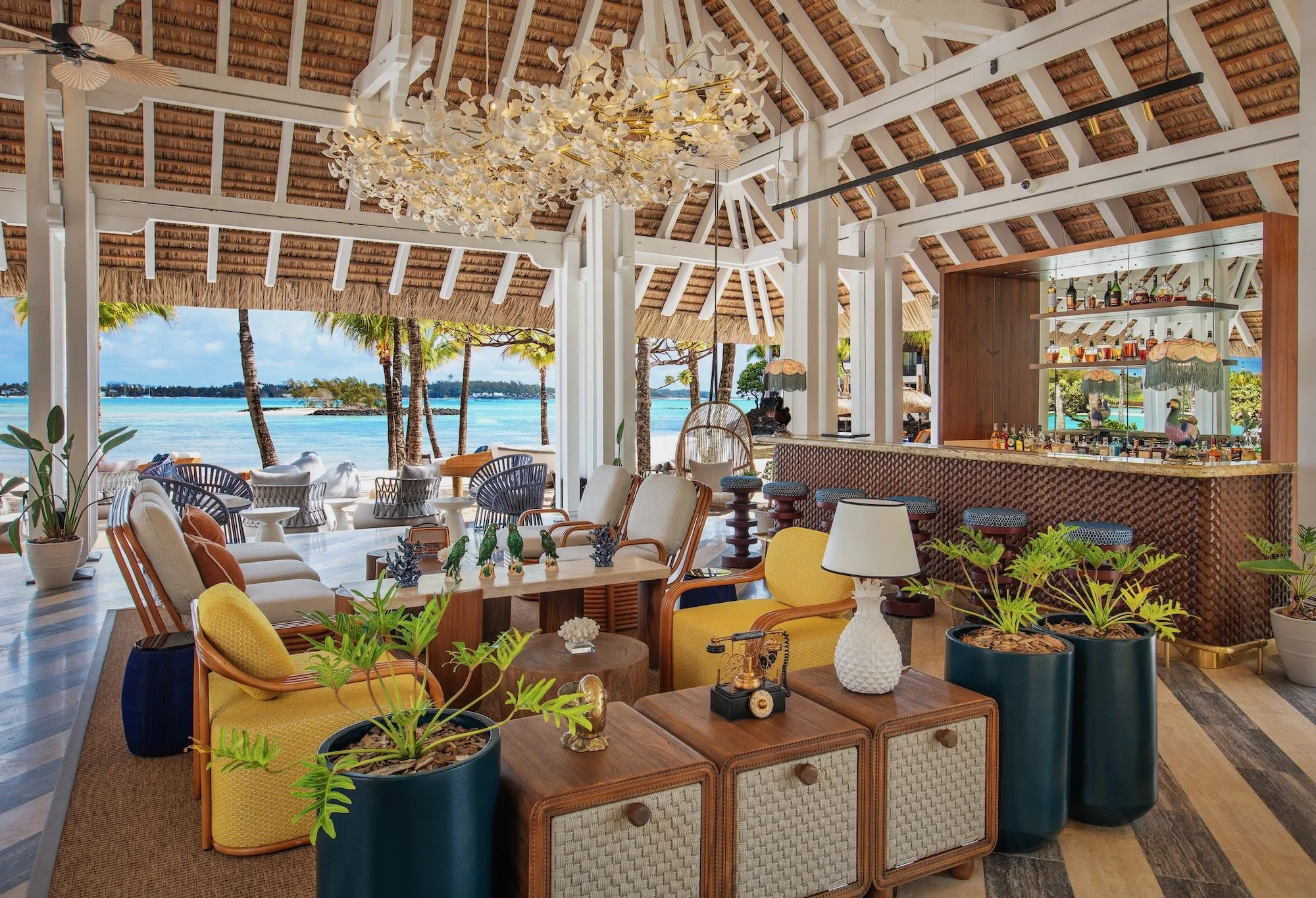 Coco’s is the guests’ beach house. With a rich and impressive history that goes back to the 1940s, this very location was first used by Jacqueline, the daughter of the previous owners, to create a restaurant and bar that garnered a reputation for exceptional food and hospitality, enough to attract people from all over the island, including celebrities. That same personal charm, sophistication, and love for hospitality, formed the pillars for Republik’s new design approach. Much like Mauritius itself, The Beach house combines colonial architecture, with hints of blues of Cote D’Azur, and the vibrant and tropical patterns of Mauritius. The design is mindfully layered to create a layered and unique guest experience.